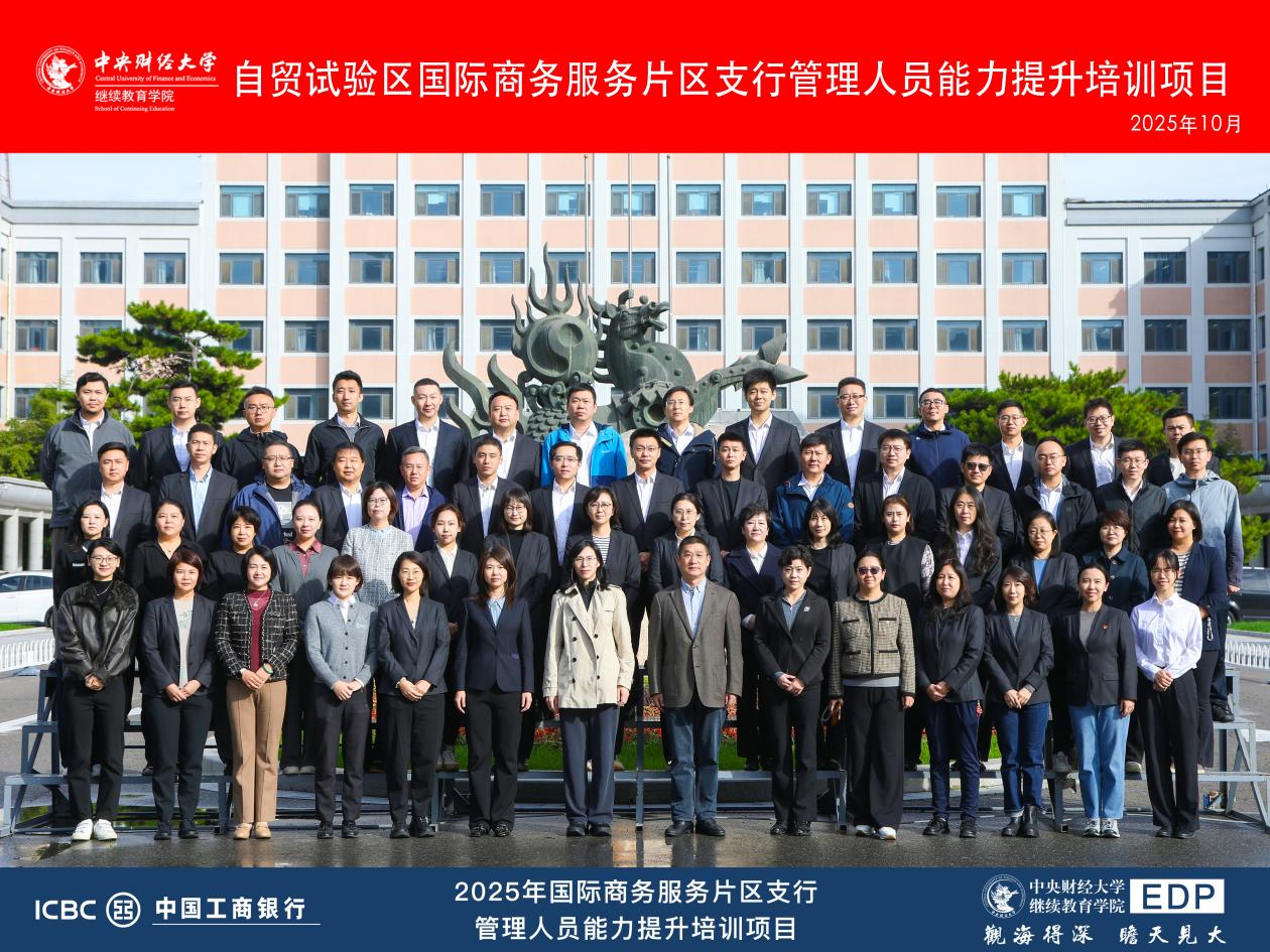 2025年10月10日至11日,由中国工商银行股份有限公司北京自贸试验区国际商务服务片区支行主办,中央财经大学继续教育学院承办的“自贸试验区国际商务服务片区支行管理人员能力提升培训项目”在我校成功举办。来自中国工商银行股份有限公司北京自贸试验区国际商务服务片区支行的学员参训。