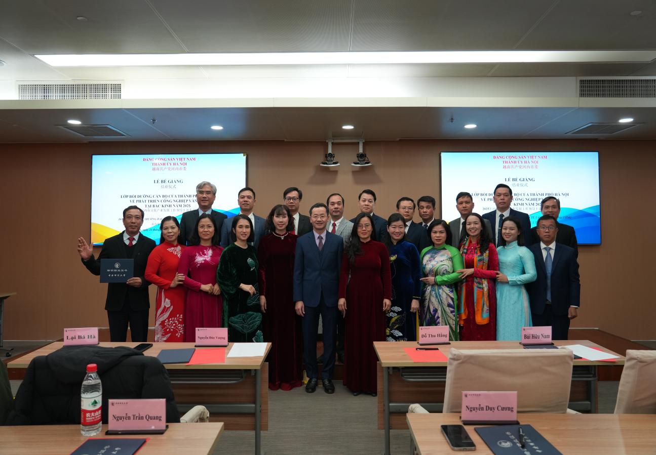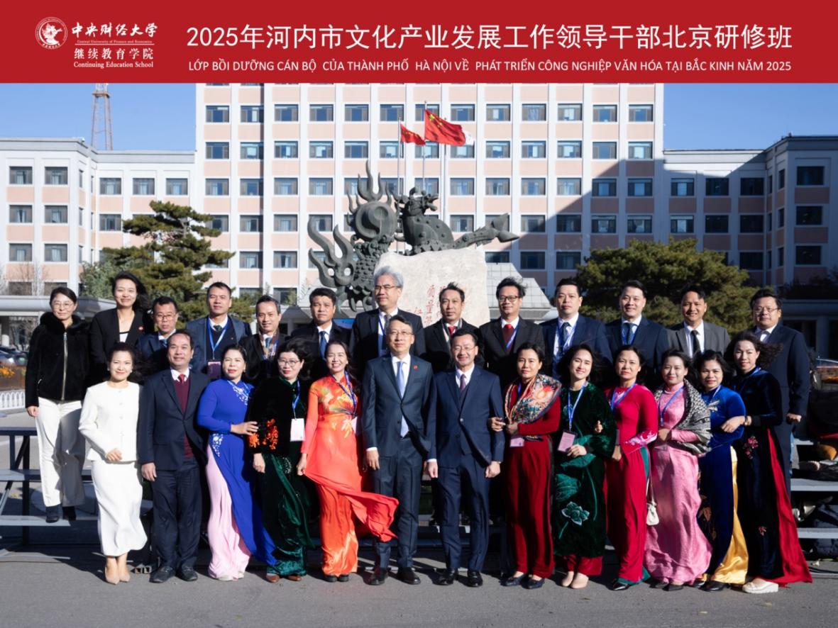 2025年11月16日至25日,由越南河内市政府主办,中央财经大学承办的“2025年河内市文化产业发展工作领导干部北京研修班”在我校学院南路校区成功举行。来自越南河内市文化系统的22名领导干部圆满完成了为期十天的在华研修学习。
