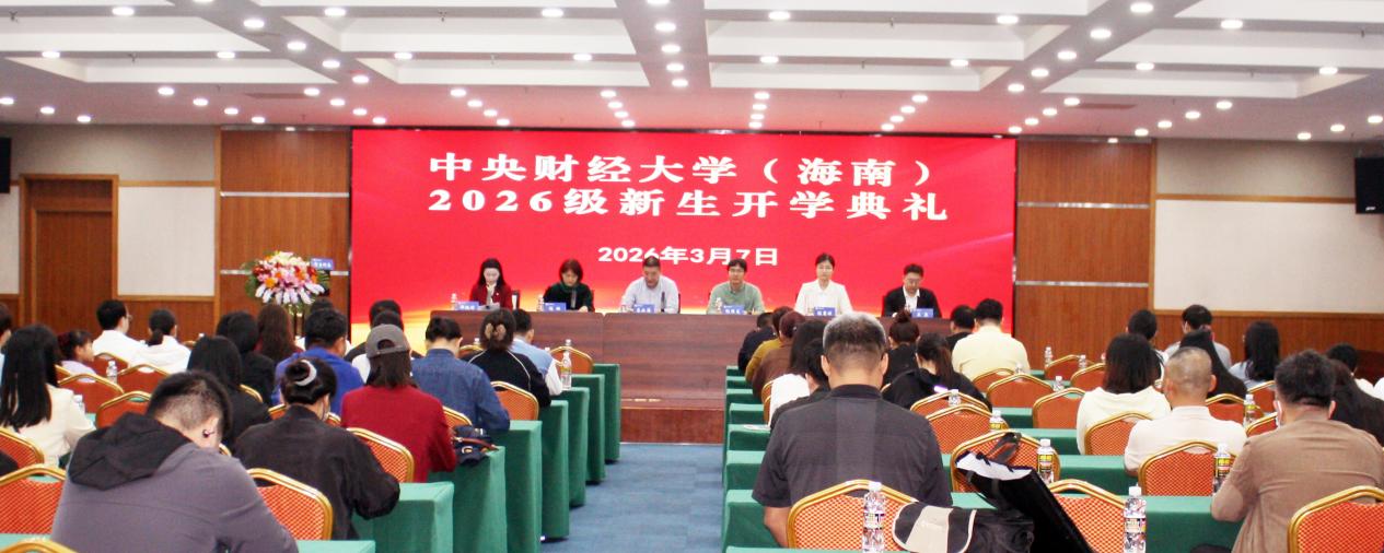 2026年3月7日,中央财经大学继续教育学院海口教学点隆重举行2026级新生开学典礼。中央财经大学继续教育学院院长蔡如海、党委副书记祝维龙,海南大学经济与管理学院会计系主任沈琳,海口教学点主任郑魏球以及相关部门负责人、师生代表共同出席,见证新一届学子开启求学新征程。